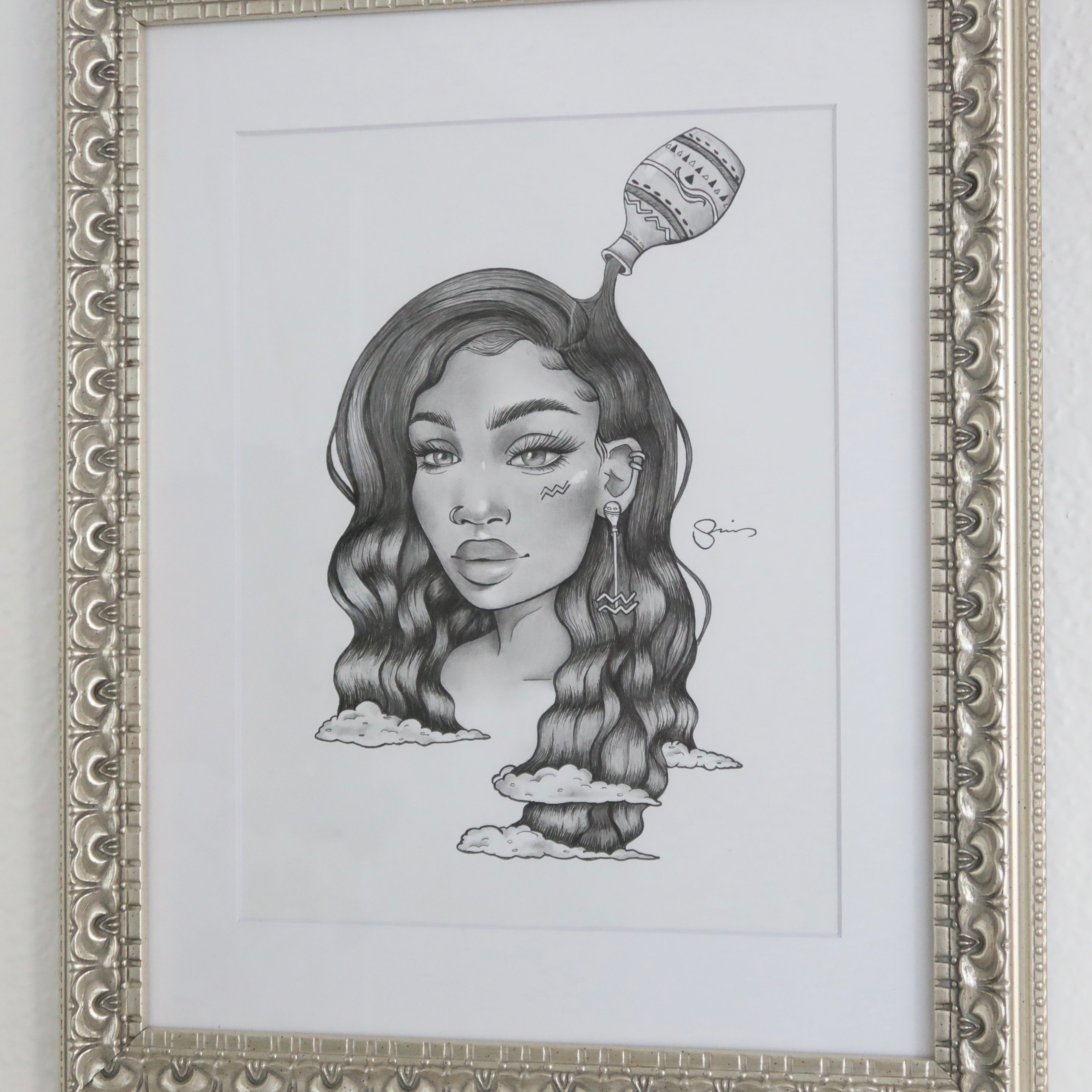 Aquarius Framed Zodiac Original