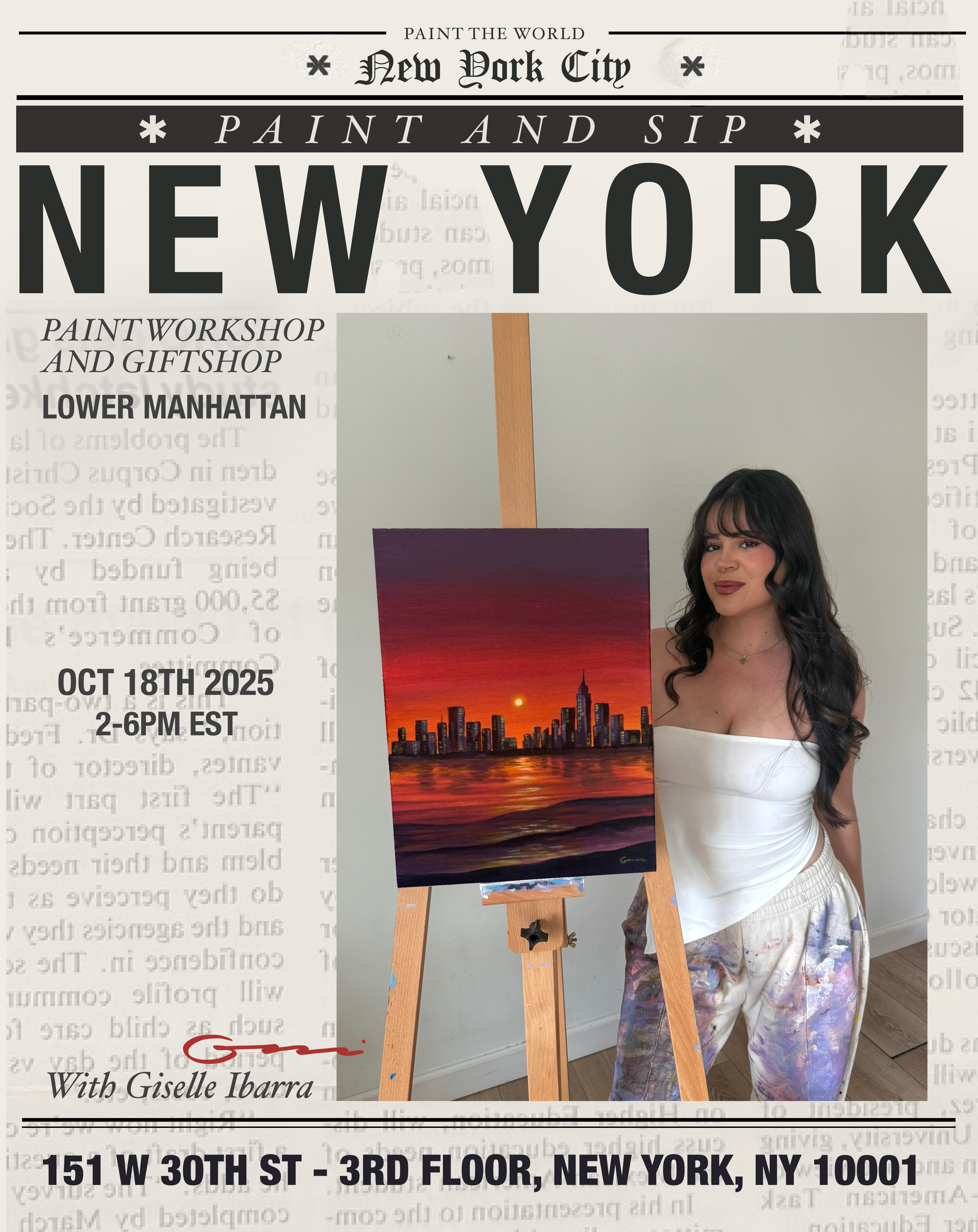 Paint and Sip date Saturday October 18th from 2-7pm in NYC, New York.