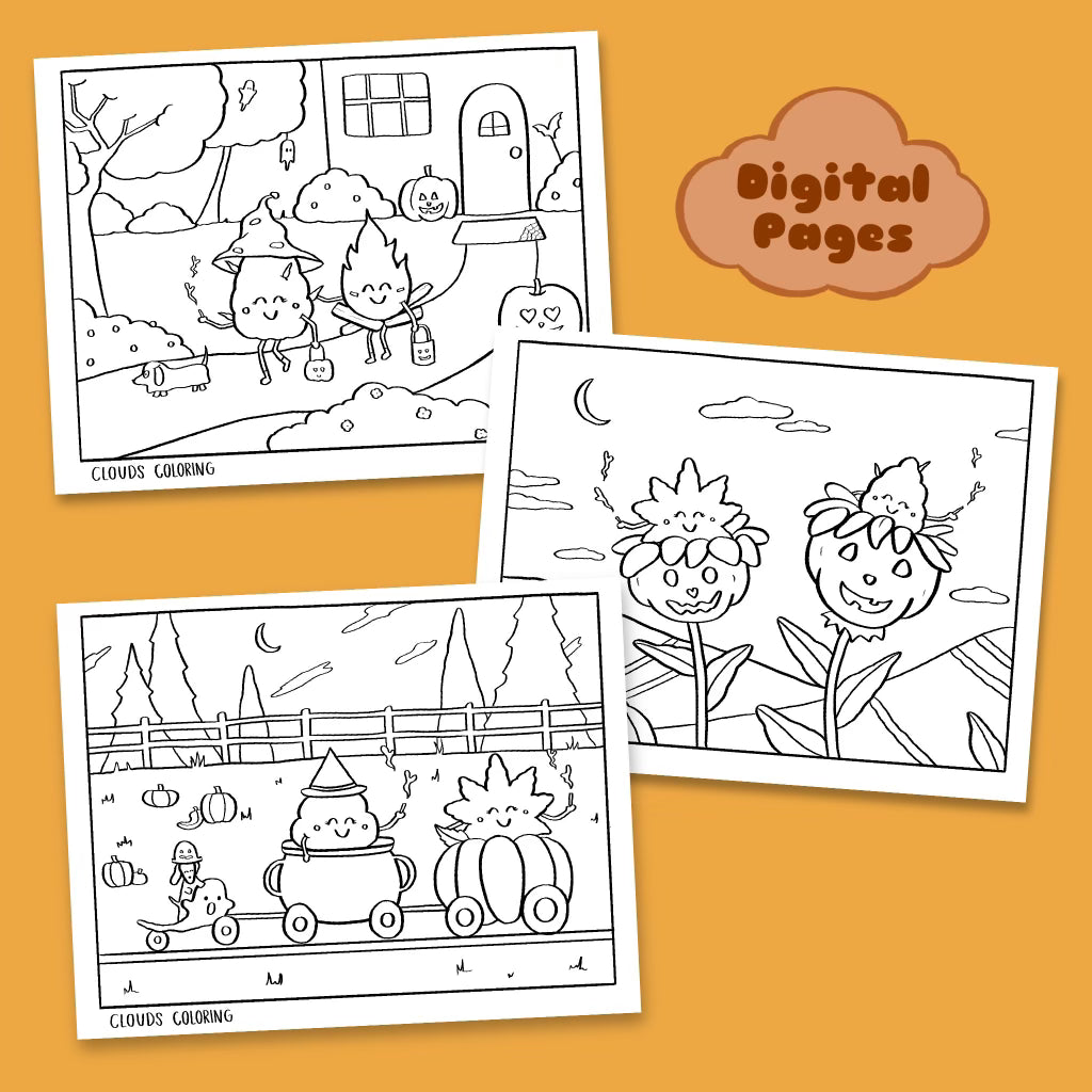 - Includes 3 pages (Trick or Treat, Pumpkin Flowers and Spooky Train)